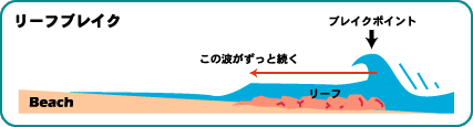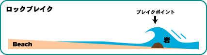 ものをロックブレイクなどと言う。日本でリーフブレイクと言われている場所も、