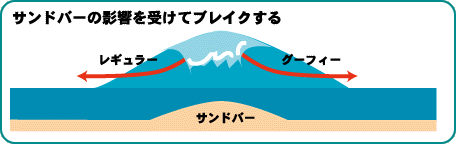 日本のポイントのほとんどはビーチブレイクですから、波の崩れる場所 (ブレイクポイント)