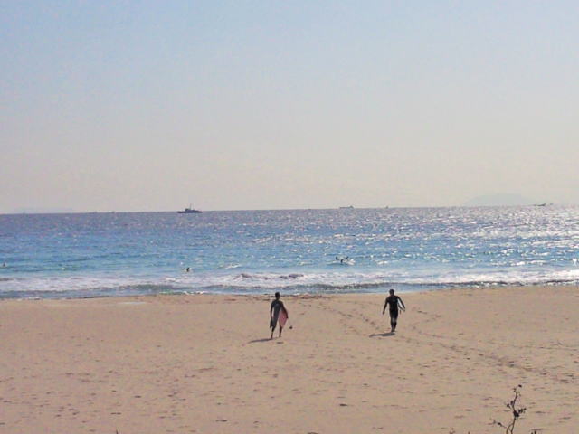 白浜を通って(白浜は風に晒されて、ウインドサーフィンしかいませんでした。)