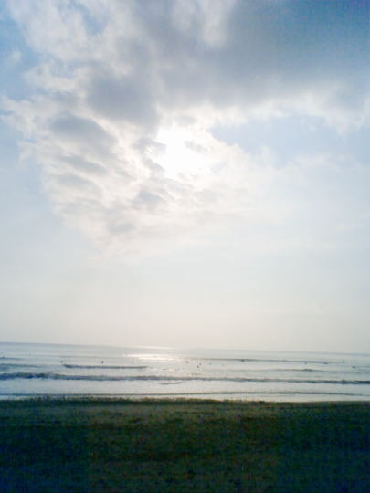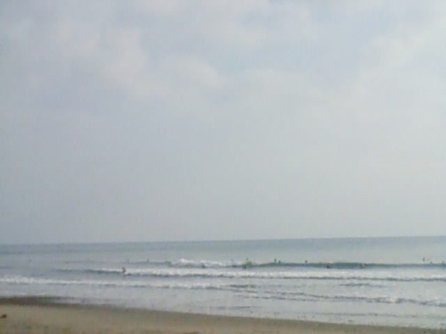 静岡に狙いを定めて 海チェックの為、静波を覗いてみると サイズは腰〜腹でちょっとダンパー気味、、人も結構居る。。 と、言っても伊良湖のメジャーポイントと比べれば半数以下だけど 今回は、15人! 出来れば10人以下!