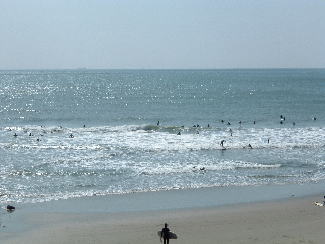西風の影響を受けて、ロングビーチは波が無くなってしまった(涙)