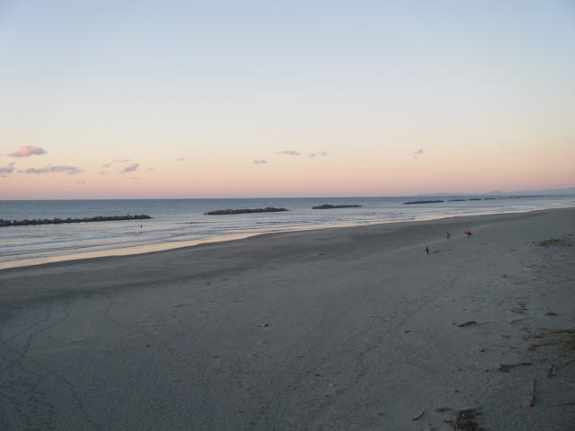冬型の気圧配置でオフビュービュー吹くと本当に波が無くなる伊良湖です。