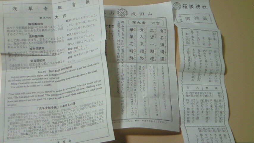 さてさて、お正月から箱根神社・成田山・浅草寺と、お参りに行った時におみくじを