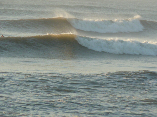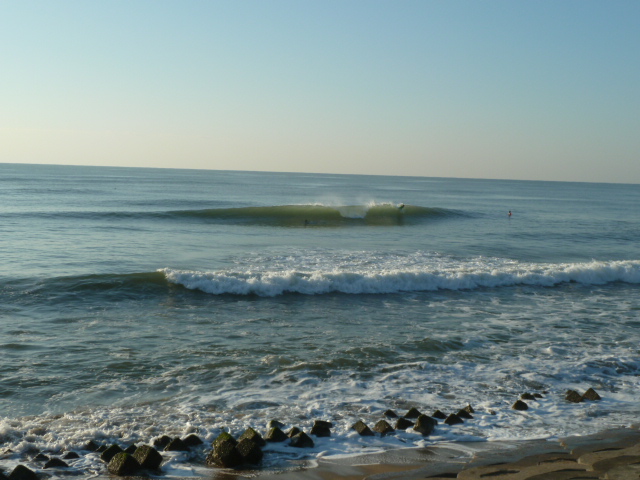 波の間隔が狭く重なり気味なのですが、形に良い波は水量増してミドルから掘れる楽しい波でした。ライト、レフト共にありましたが、自分はレフト狙いで、たまにライトって感じでした。イイ波は2〜3発いけました(^O^)コンスタントに乗れましたが、これ以上人が増えたら嫌だなぁって感じでした。波数あるけど割れるポジションが決まってるので(+_+)