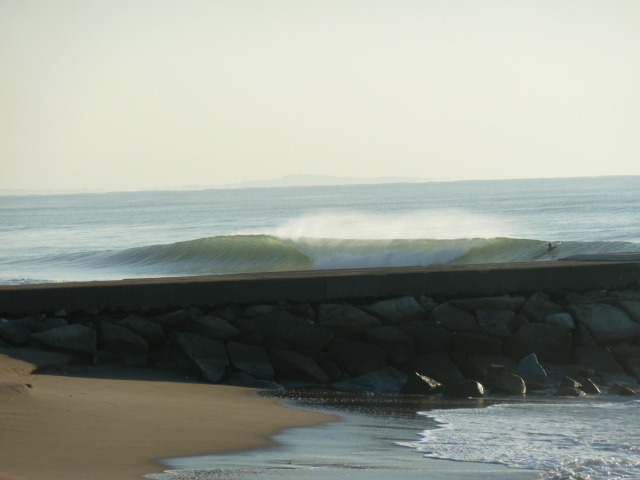 月、火曜とイイ波続きだったので味をしめて、水曜も仕事前に午前中だけ行って来ました。いろいろポイントチェックしたのですが、どこも微妙で唯一形になってる某ポイントで入って来ました。地形良いんですね、ここ。小さいながらもセットは綺麗にブレイク。だがしかし、混雑(+_+)波数とサーファーの数が合ってない。がっついてる人が多く、逆にストレス溜めてしまったよ〜(((^^;)