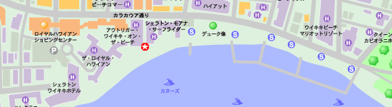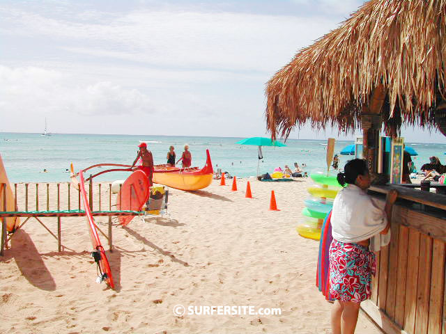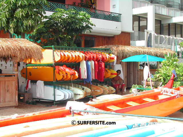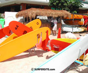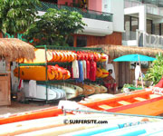 | シェラトン・モアナ・サーフライダーのビーチ沿い、カヌーが停泊している場所が目印のレンタルボード屋さん。ここのオーナーはデューク・カハナモクの甥っ子「didi」さん。ボード込みのサーフレッスンもやってる。日本語話せる気さくなお姉さんが常駐してるので安心して利用できますな。別サービスでビーチから望遠使って写真も撮ってくれるサービスもある($50/名/1時間)。自身のライディングフォトを残したい人にはお勧め。 |
