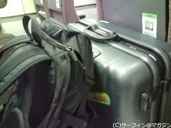 | 今回は姉妹サイト「ハワイ旅行初心者ガイド」の取材も兼ねてるので装備は少なめ。パソコンとカメラと着替えだけ。スーツケースの中はほとんど空っぽです。サーフボードはkeithんとこのハワイ・サーフィン・サポートで借ります。 | JALのロビー。今回はエコノミーセイバーで往復買って、帰りの便だけマイレージでCクラスにアップグレードしました。行きは6時間だし寝てるだけだしエコノミーでも充分です。もちろん今回も一人旅(-_-!) |
